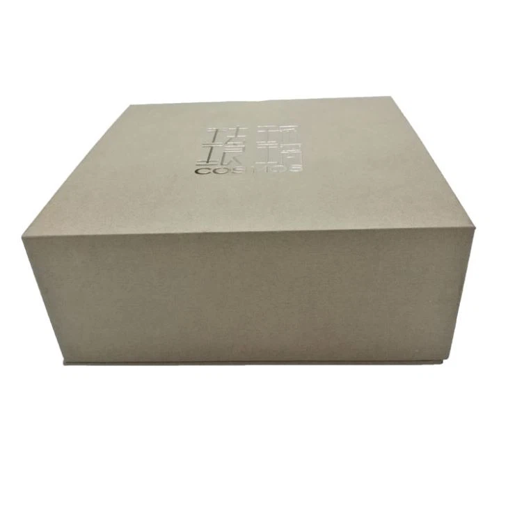Hettastórar gávueskjurí tilrættalagdari stødd, gjørd úr 120gsm gráum Yanlian tekstureraðum pappíri laminerað 1500gsma Ein karakter fastgray chipboard, Kornklárleiki, silvur logo folie{{2}hot stempling á utan lok,